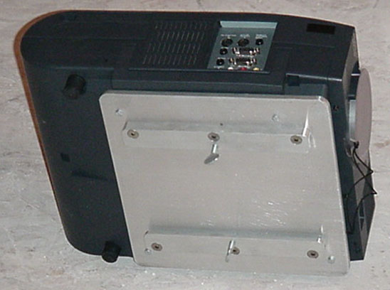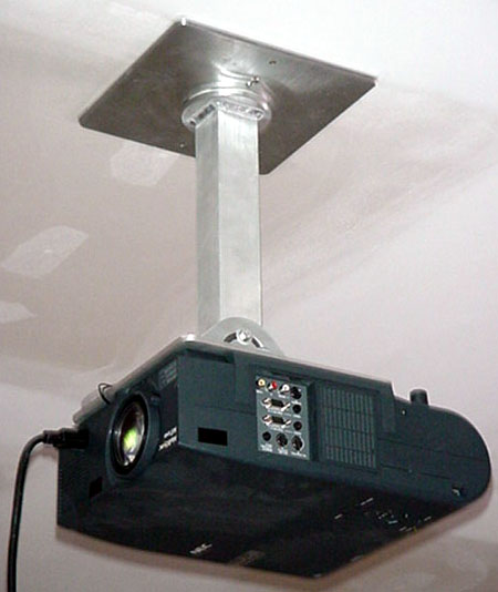 The projector is an NEC MT-1040, or MT1040. It is an XGA resolution LCD unit rated for about 1300 lumens. I will admit that it doesn't have a spectacular black level, I wanted to avoid "rainbowing" in my first foray into the projection, so I avoided DLP units for now. I am willing to try out CRT, DLP and LCOS units at some point in the future, and I believe that this mount should accomodate the weight of a CRT as I've found that it can support my own weight when I try to hang from it.